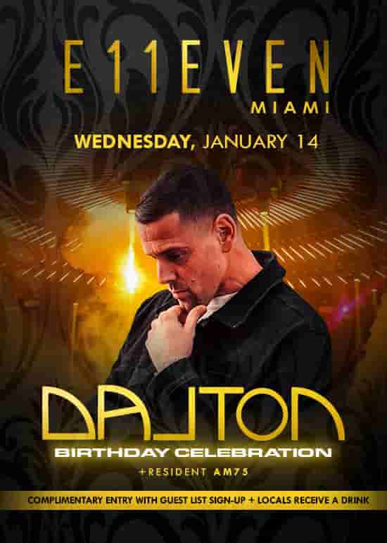 Dalton Birthday Celebration at E11EVEN Wednesday, January 14.. Complimentary Entry with Guest List Signup + FL locals receive a drink.