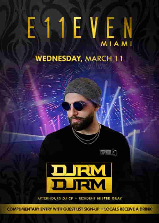 DJ RM at E11EVEN Wednesday, March 11. Complimentary Entry with Guest List Signup + FL locals receive a drink.