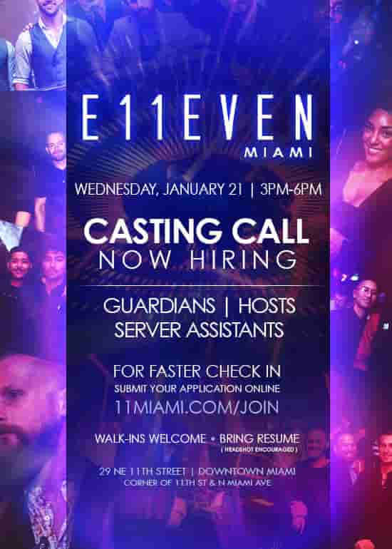 E11EVEN MIAMI, the world's only Ultraclub will host a Casting Call Wednesday, January 21 from 3PM-6PM. Interview with a Hiring Manager on the spot.
