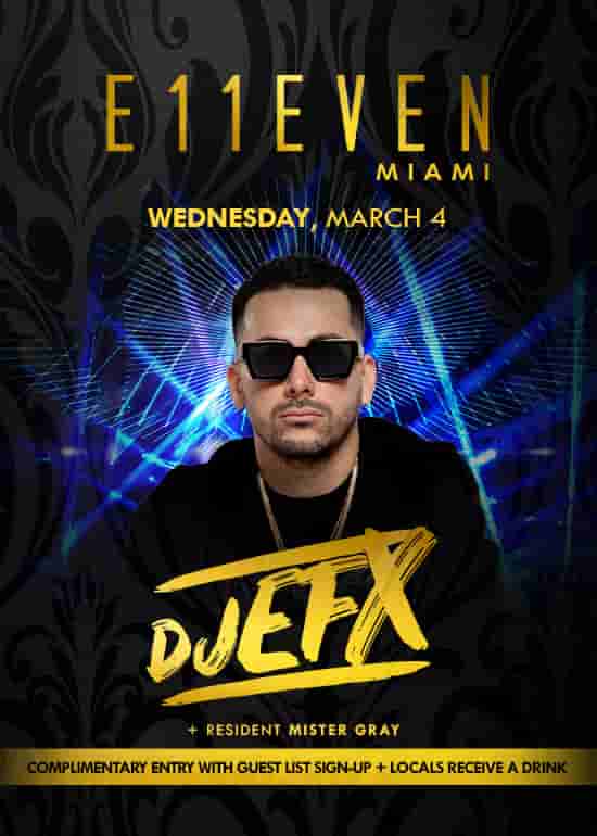 EFX at E11EVEN Wednesday, March 4. Complimentary Entry with Guest List Signup + FL locals receive a drink.