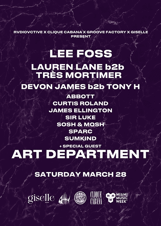 Sounds by Lee Foss, Lauren Lane b2b Très Mortimer, Devon James b2b Tony H, Abbott, Curtis Roland, James Ellington, Sir Luke, Sosh & Mosh, Sparc, Sumkind + special guest Art Department.