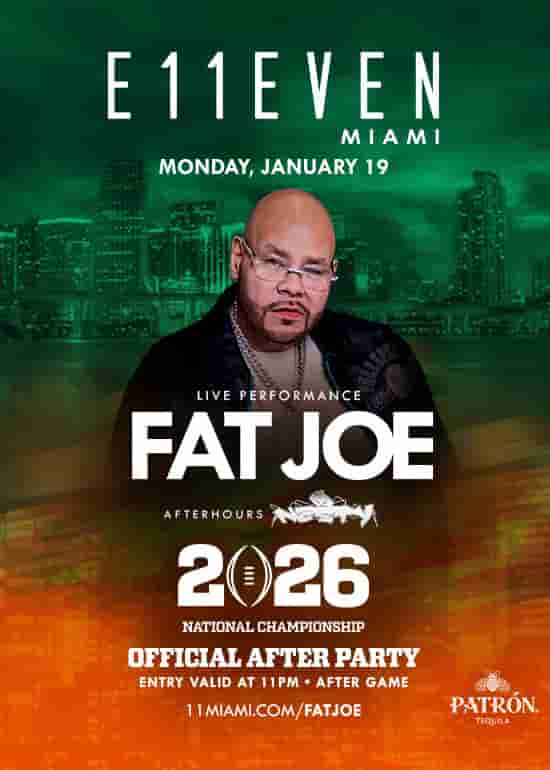 The BIGGEST College Football National Championship After Party in Miami is at E11EVEN on Monday, January 19, featuring a live performance by Hip Hop superstar Fat Joe! Entry valid at 11PM · After Game.