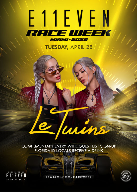 Le Twins at E11EVEN Tuesday, April 28. Complimentary Entry with Guest List Signup + FL locals receive a drink.