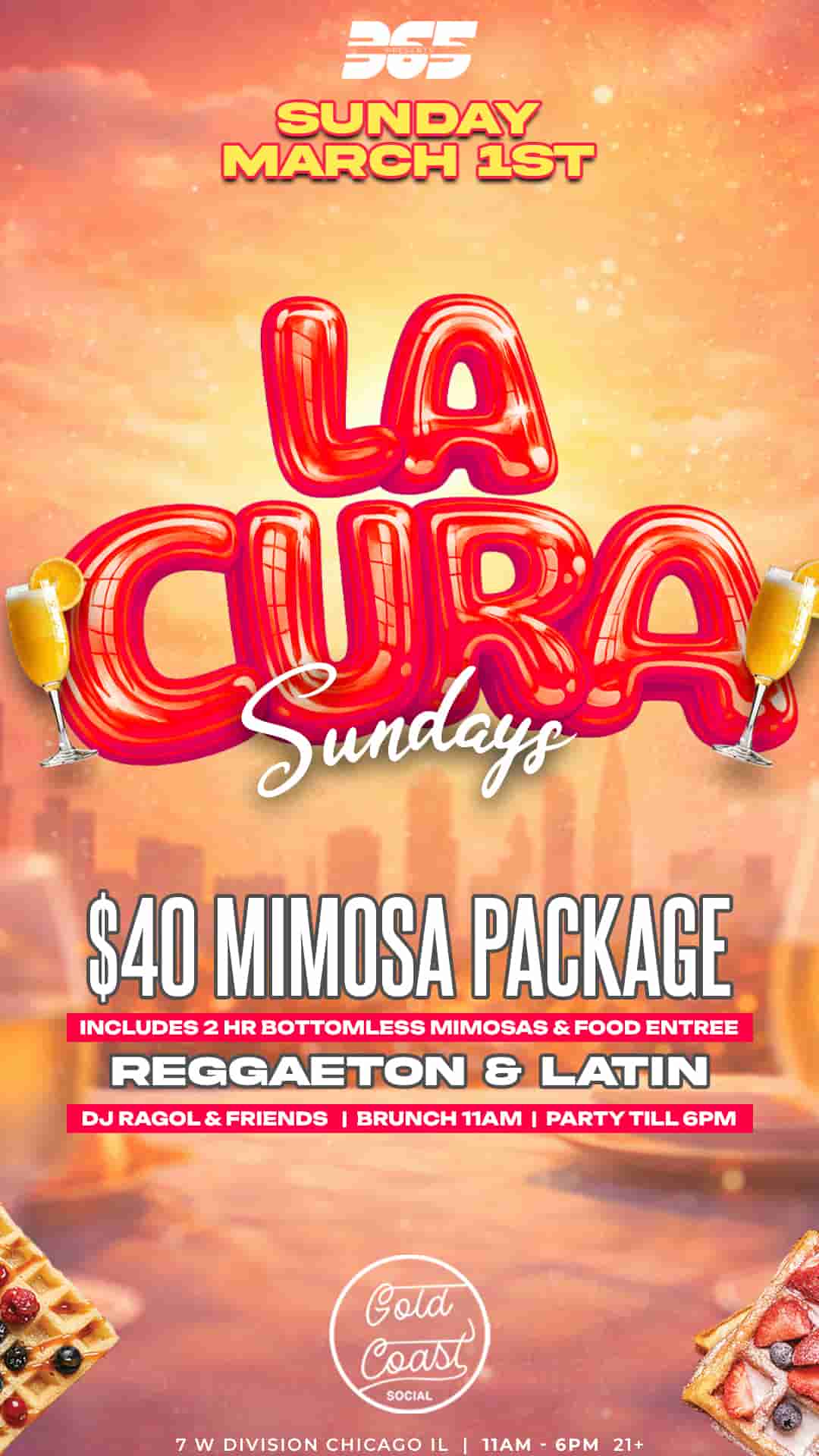 Join us every Sunday for Domingos de Brunch at Gold Coast Social. Enjoy live DJs, great food, and bottomless mimosas with bottle service and birthday packages available. The perfect way to start your Sunday Funday. 2 hot Bottomless Mimosas $40 a person from 11AM-3PM
