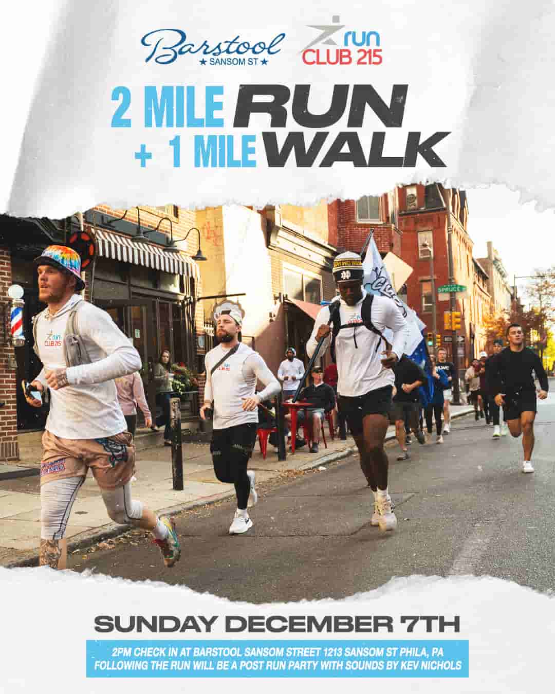 2pm check-in at Barstool Sansom Street. Following the run will be a post-run party with sounds by Kev Nichols