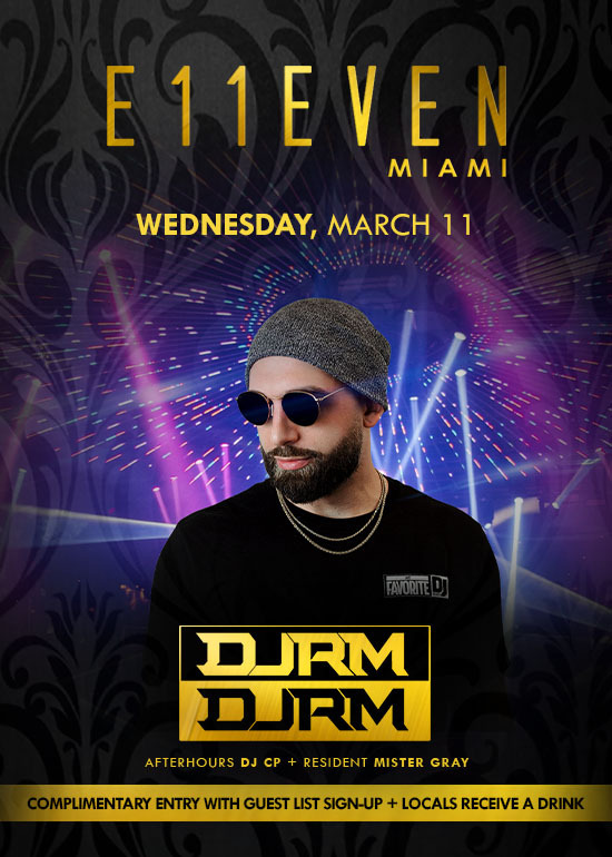 DJ RM at E11EVEN Wednesday, March 11. Complimentary Entry with Guest List Signup + FL locals receive a drink.