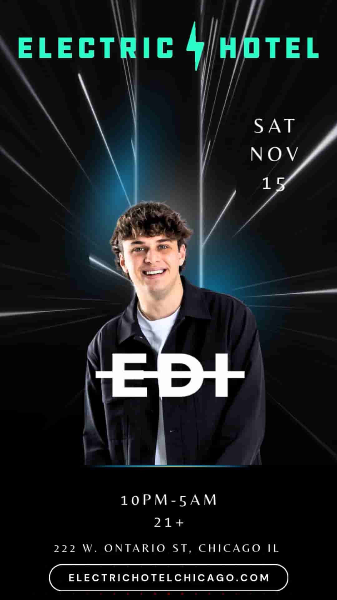 Get ready for an electrifying night at Electric Hotel, on Halloween Friday: Chicago’s premier nightlife destination! Join us for an unforgettable evening of open-format music, where Chicago's local dj: EDI, will spin a dynamic mix of genres. Expect everything from House and Hip Hop to chart-topping Top 40, Latin hits, Rock anthems, Country singalongs, throwback classics, and more.