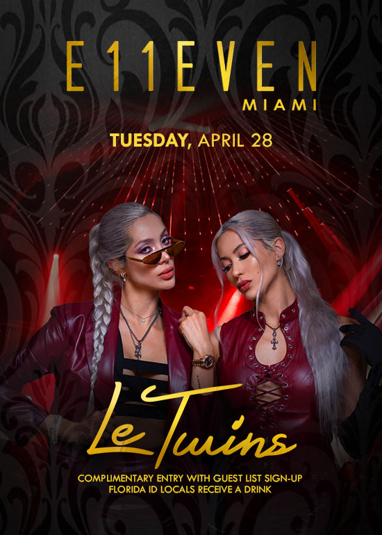 Le Twins at E11EVEN Tuesday, April 28. Complimentary Entry with Guest List Signup + FL locals receive a drink.