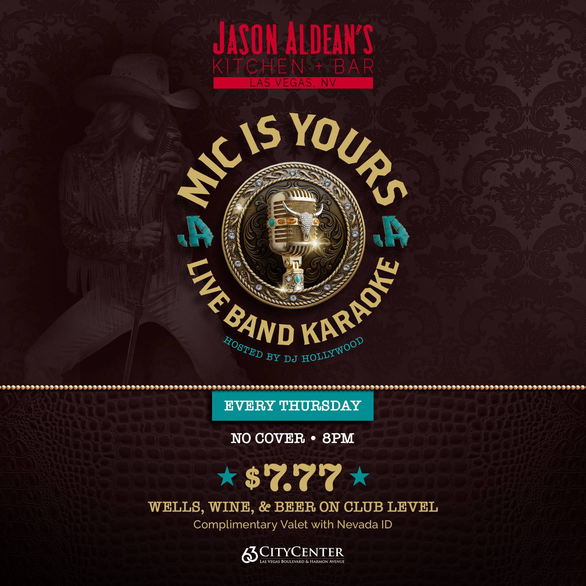 No cover, and we are offering $7.77 well cocktails, beer, and wine. Complimentary valet parking is available at 63 CityCenter (Harmon and Las Vegas Blvd) with a Nevada ID.