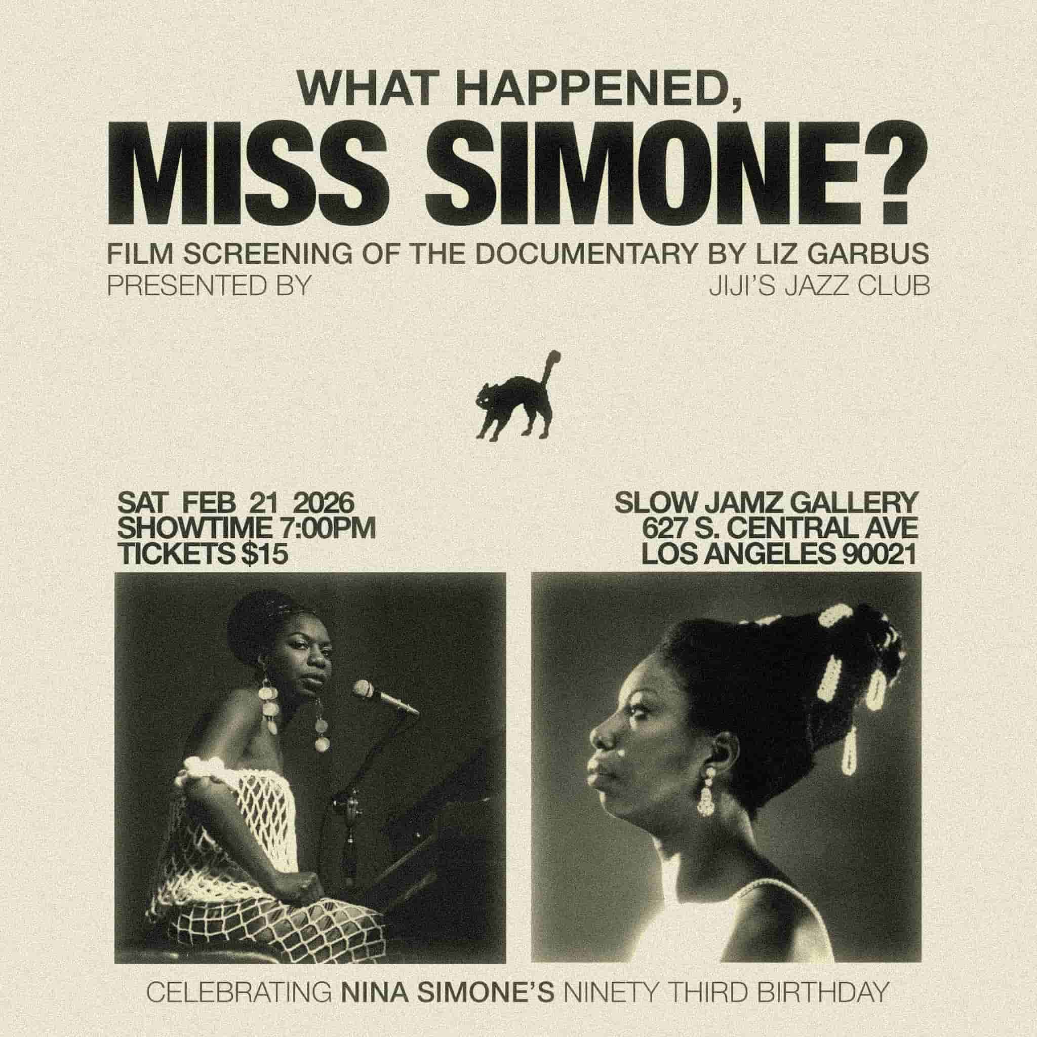 Celebrating the 93rd birthday of the legendary Nina Simone, JIJI’s Jazz Club invites you to a screening of “What Happened, Miss Simone?” - a 2015 American biographical documentary film directed by Liz Garbus.