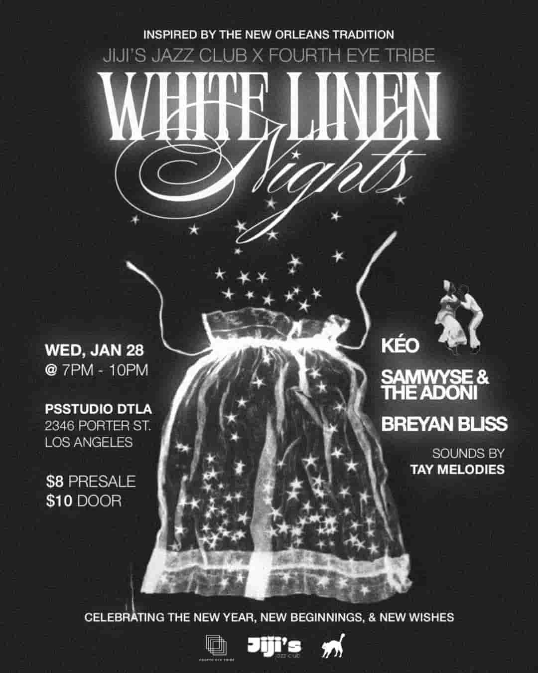 Inspired by New Orleans tradition, “White Linen Nights” is a series of curated lineups that ushers in a new era of art and culture through genuine musicianship and authentic artistic expression. These events encourage conversation and building community around the most overlooked traditions and cultures, celebrating the often under-celebrated.