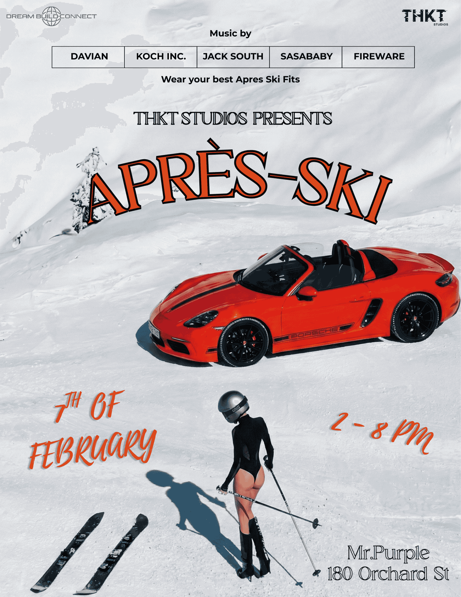 Join us on Saturday, February 7th from 2pm for our annual Après-Ski party with music by: Davian, Koch Inc., Jack South, Sasababy and Fireware.