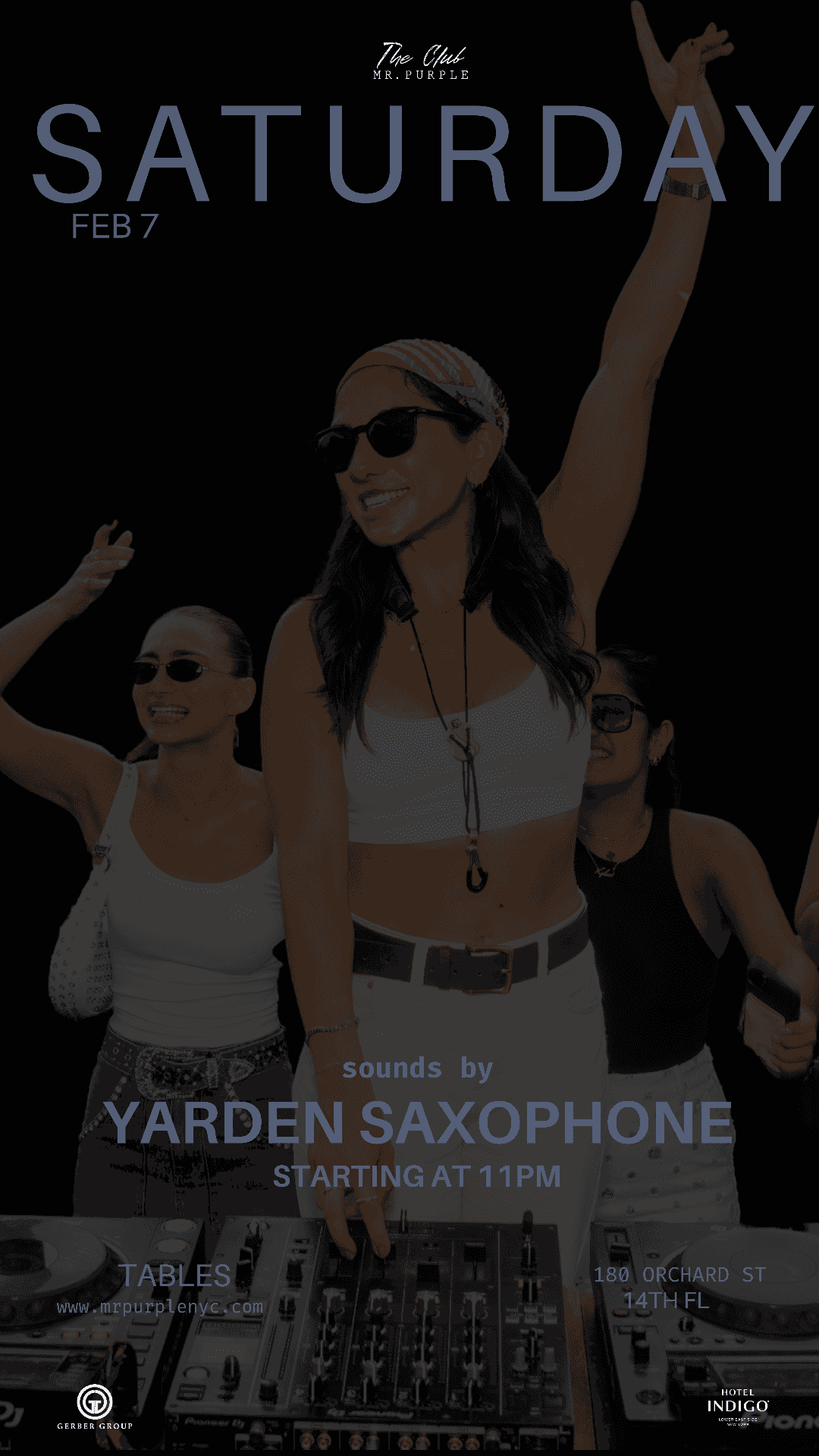 Join us on Saturday, February 7 for a late night party in The Club with music by Yarden Saxophone.