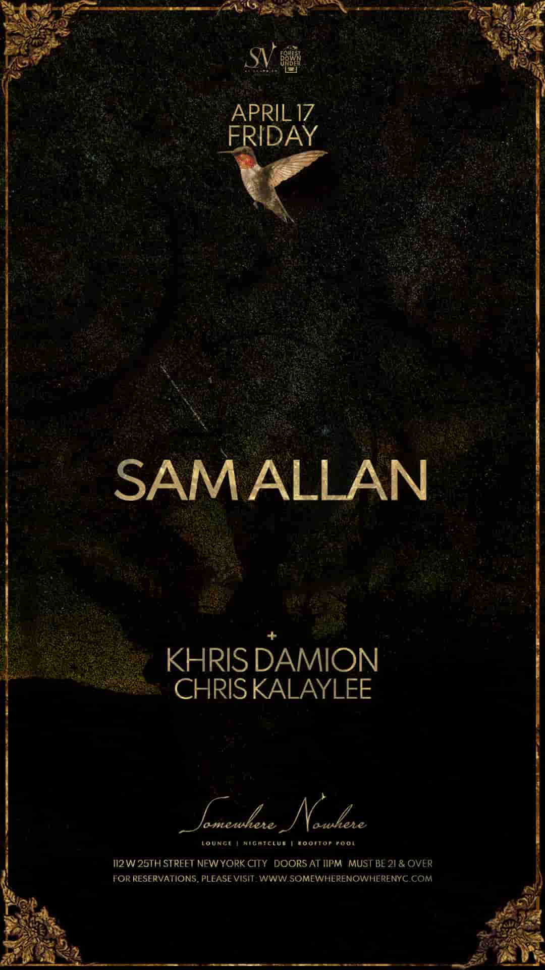 On Friday, April 17 - Sam Allan with Khris Damion and Chris Kalaylee at Somewhere Nowhere NYC.
