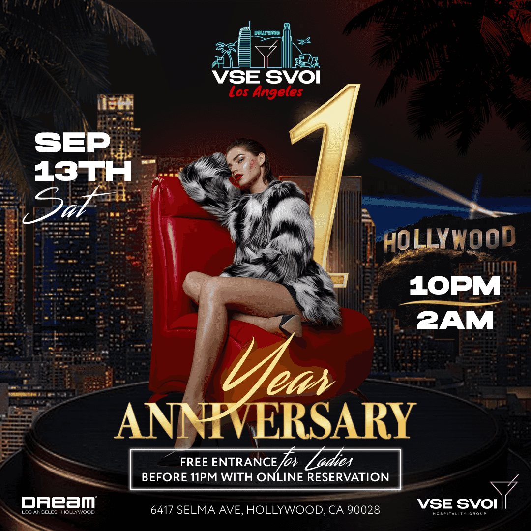 Join us for an unforgettable 1 year anniversary celebration of VSE SVOI LOS ANGELES on Saturday, SEP 13th, as we bring the heat to Hollywood with an exclusive VIP experience you won’t forget!