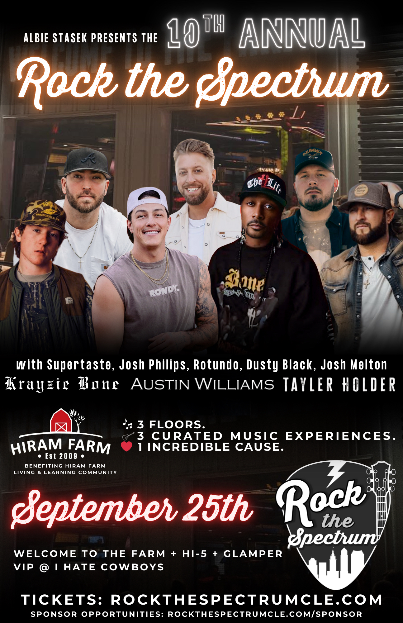Join us for an unforgettable night in the heart of the Flats East Bank as we bring music, community, and purpose together for Rock The Spectrum 2025 โ an epic multi-venue experience benefiting Hiram Farm (hiramfarm.org).